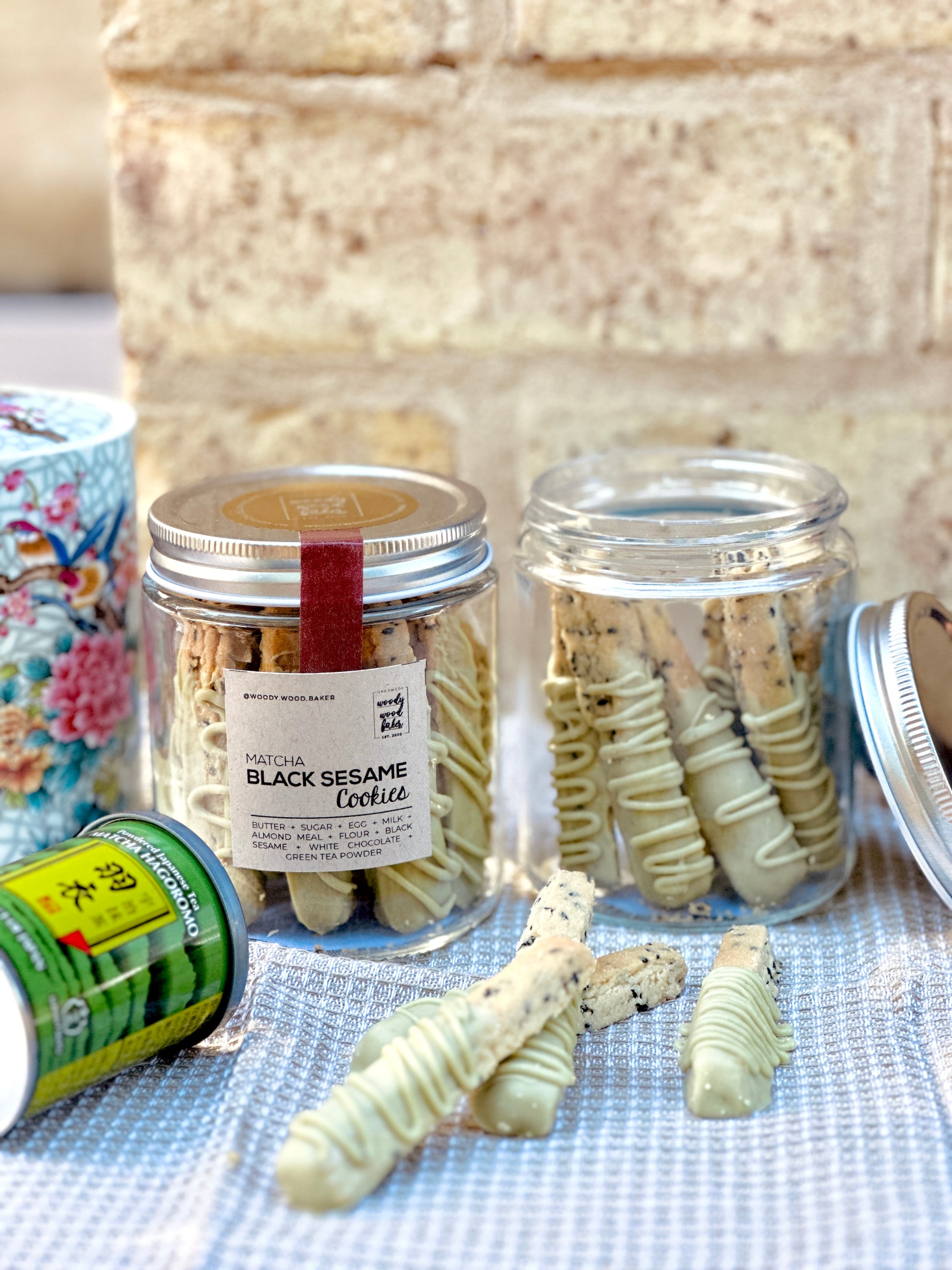 Discover the delightful fusion of flavours in our Matcha Black Sesame Cookie Sticks, the very first cookie stick creation from Woody Wood Baker. These elegant treats start with our best-selling black sesame cookie base, offering a rich and nutty flavor that's simply irresistible. Each cookie stick is then coated with smooth white chocolate and dusted with premium matcha powder, creating a beautiful combination of creamy and light textures that melt in your mouth.